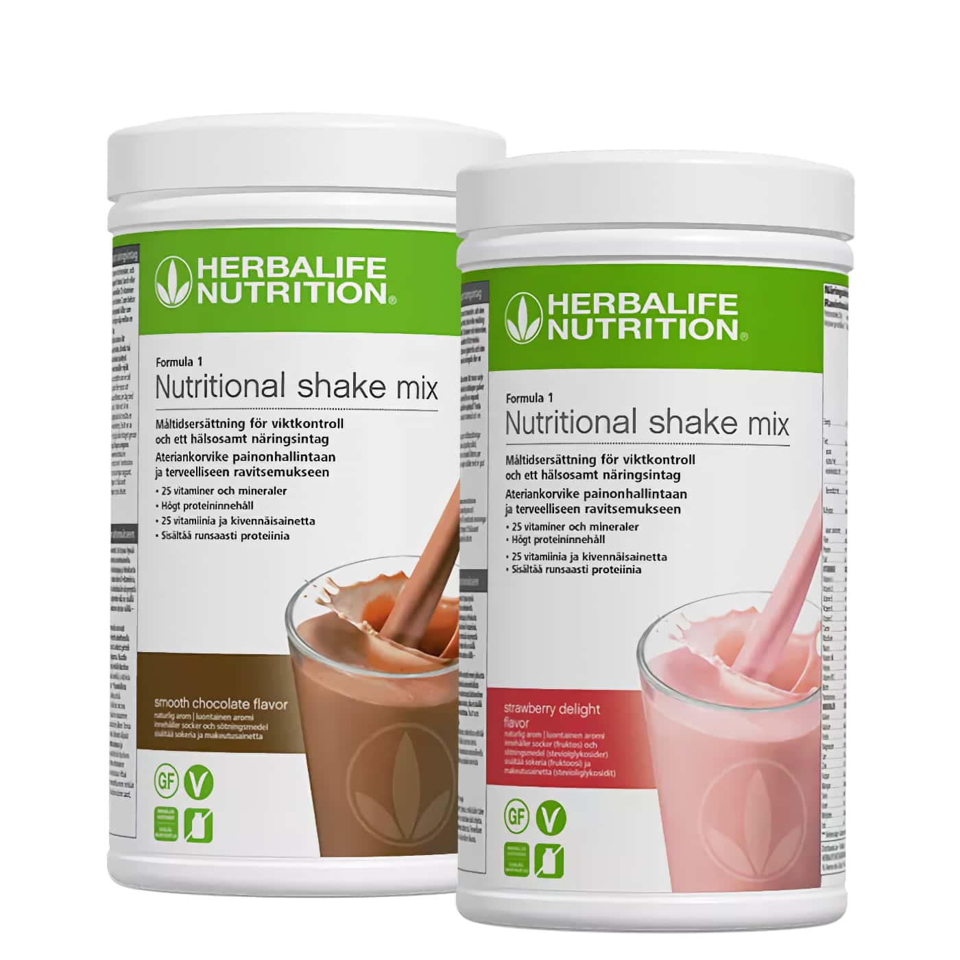 Herbalife Formula 1 är ett smidigt val för dig som vill förenkla vardagen och ha ett balanserat alternativ till frukost, lunch eller middag. Paketet innehåller två burkar Formula 1, där du själv väljer smak eller kombinerar olika favoriter.
